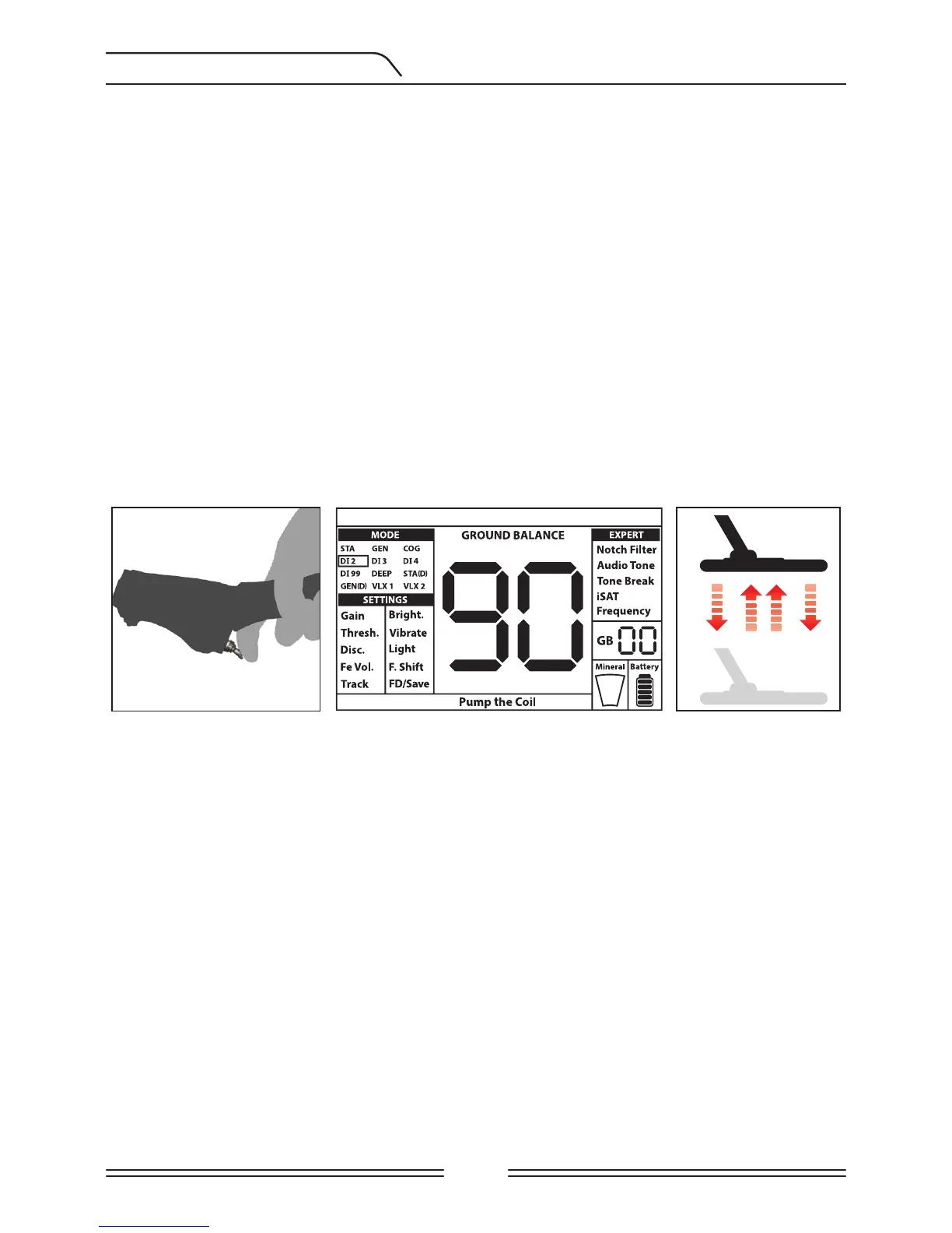2) Push the ground balance trigger forward (GROUND BALANCE value and “Pump the Coil”