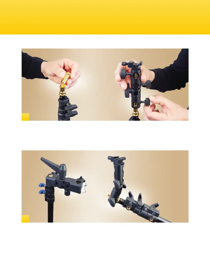 threads of your light stand and mount the umbrella bracket as shown in step 2.