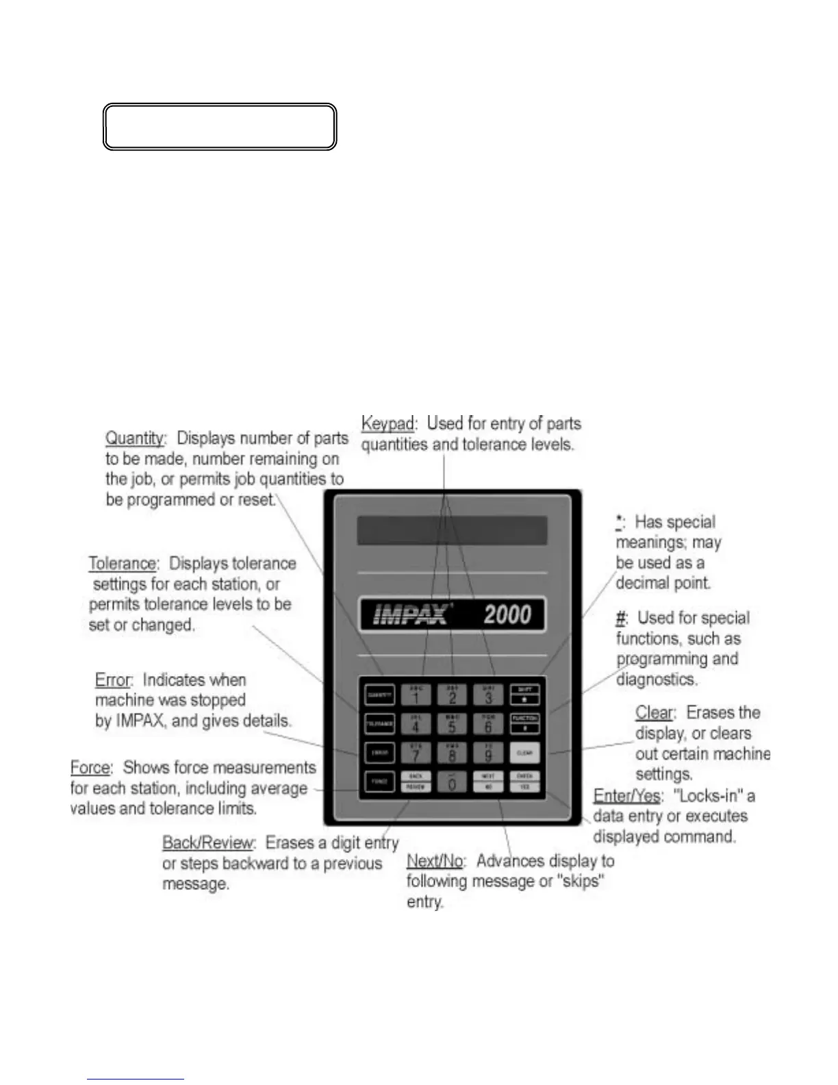 prompts or questions during operation. The Keypad* is used to enter commands or information,