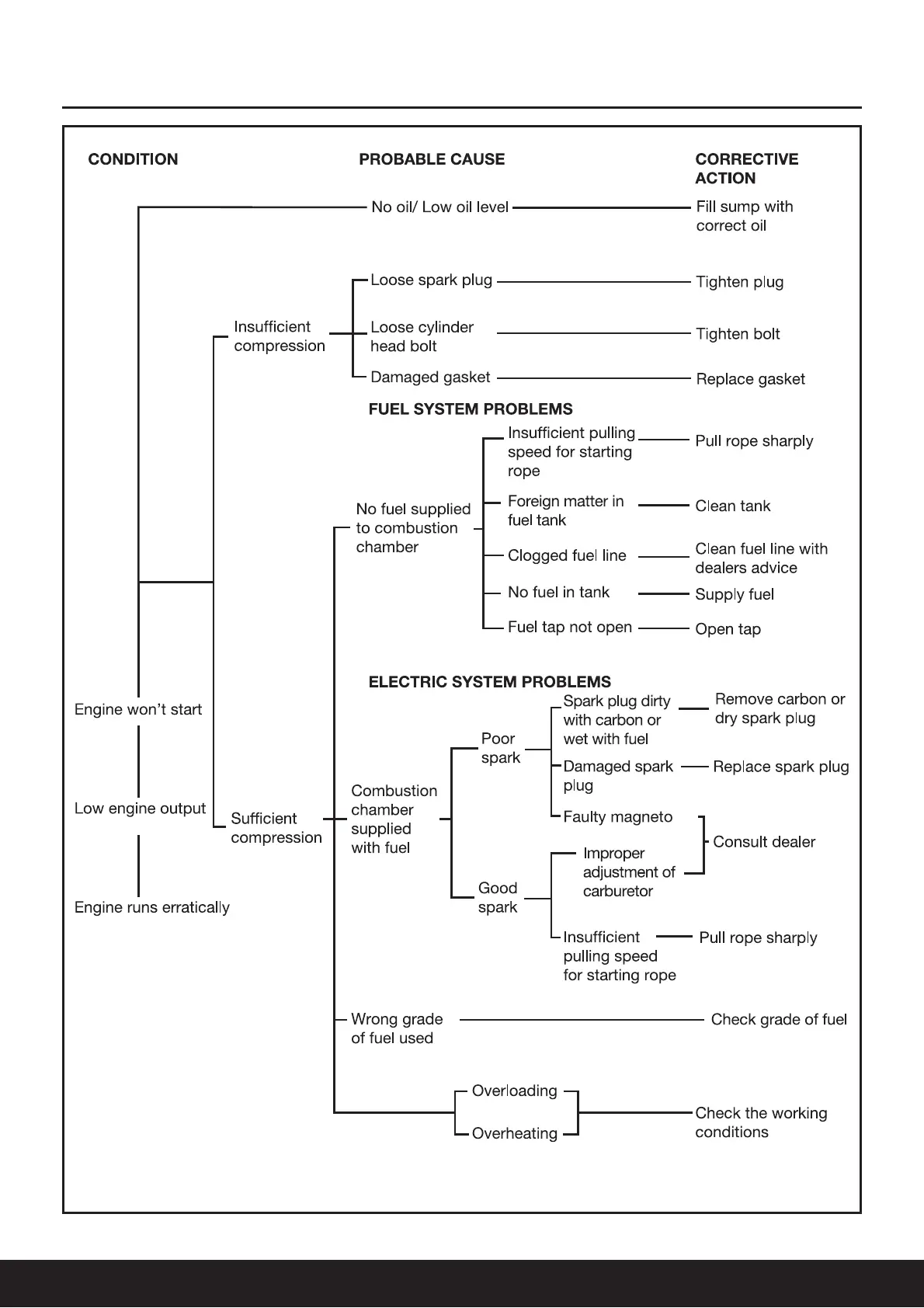 Impax IM2500I - Troubleshooting: Engine Start & Output Issues; Engine Wont Start Problems; Low Engine Output and Erratic Running