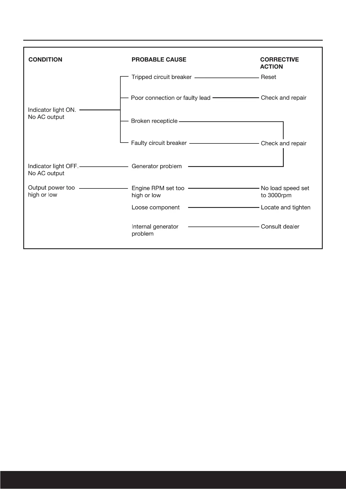 Impax IM2500I - Troubleshooting: Indicator Lights & Output Power; Indicator Light ON, No AC Output; Indicator Light OFF, No AC Output; Output Power Too High or Low