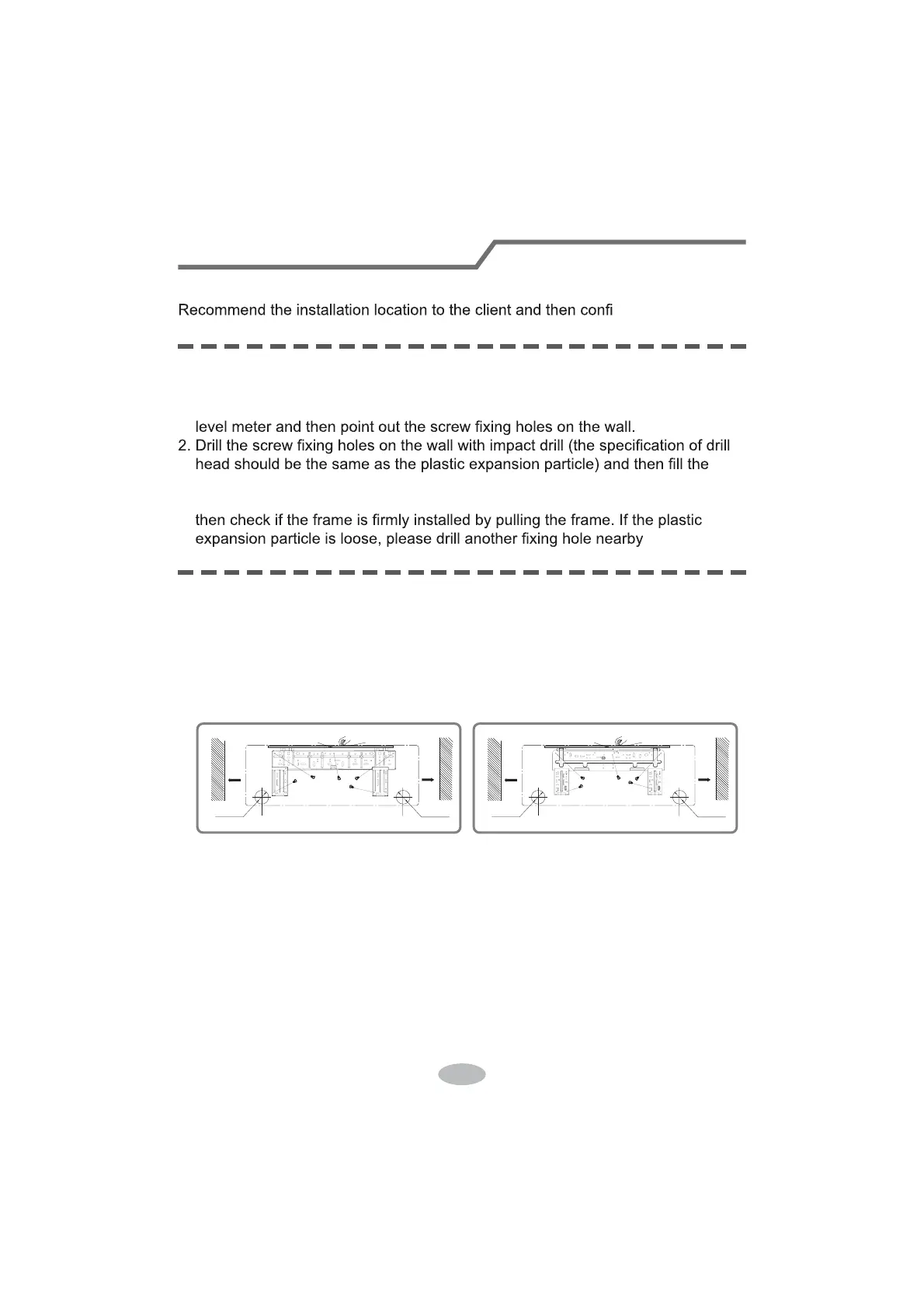 1. Hang the wall-mounting frame on the wall; adjust it in horizontal position with the