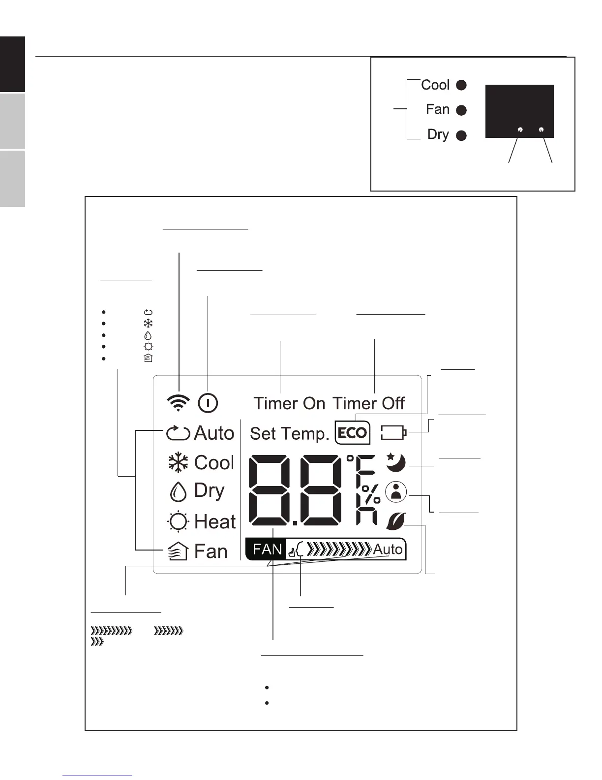 1. Current operating mode COOL, FAN, DRY. When operating in AUTO