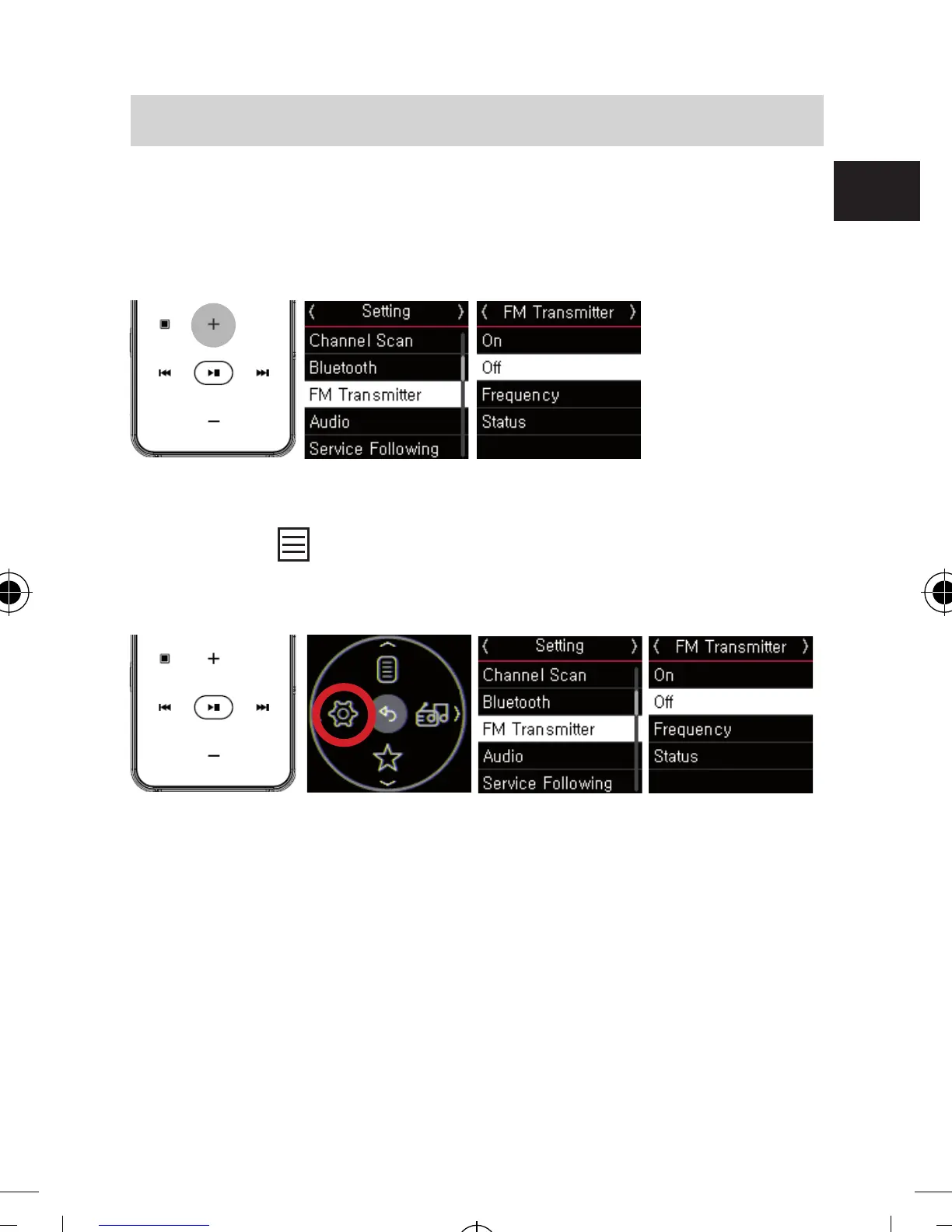 , dann wählen Sie “Setting” ▹ “FM Trans-