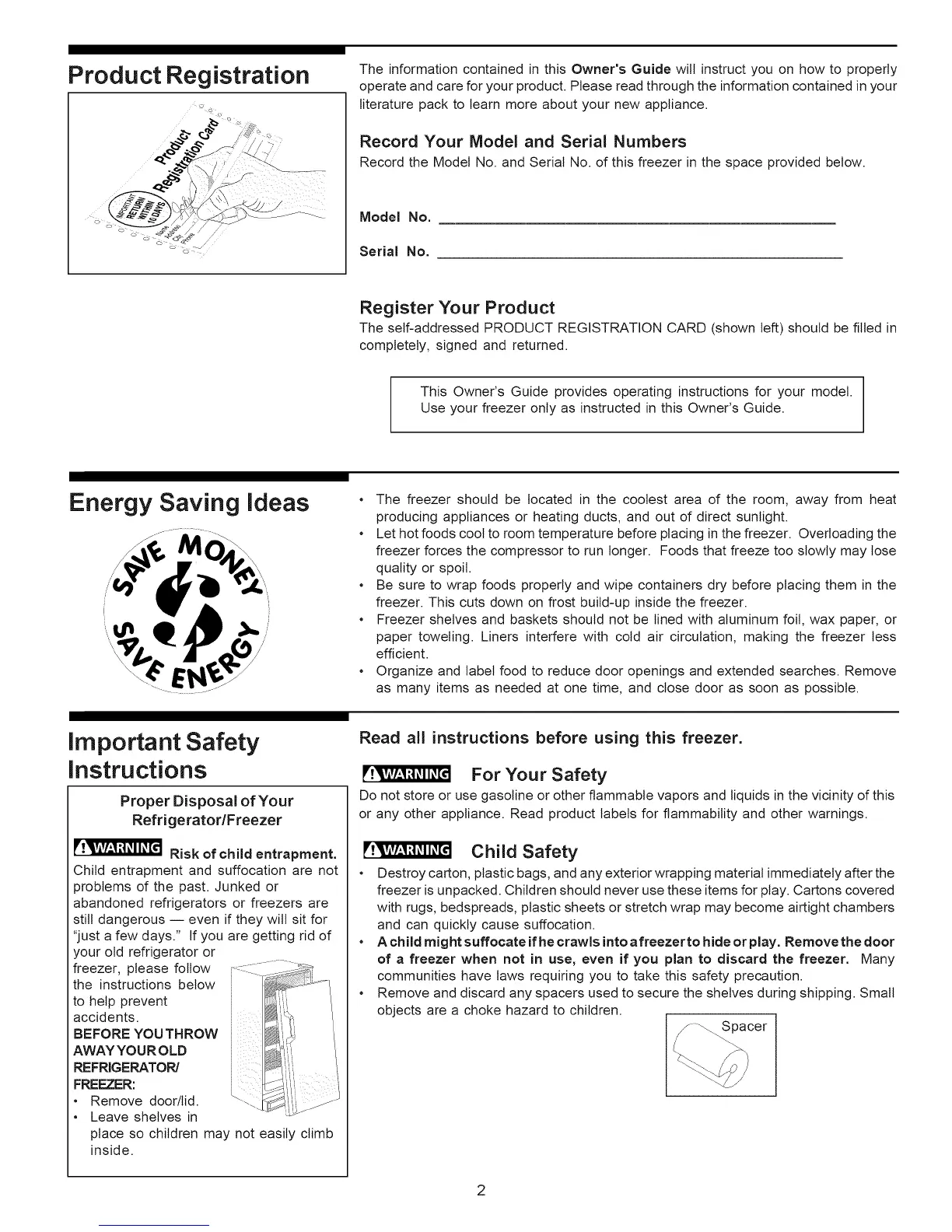 Record the Model No. and Serial No. of this freezer in the space provided below.