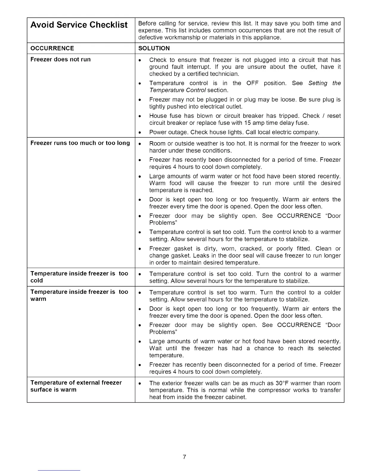 Avoid Service Checklist Before calling for service, review this list. It may save you both time and
