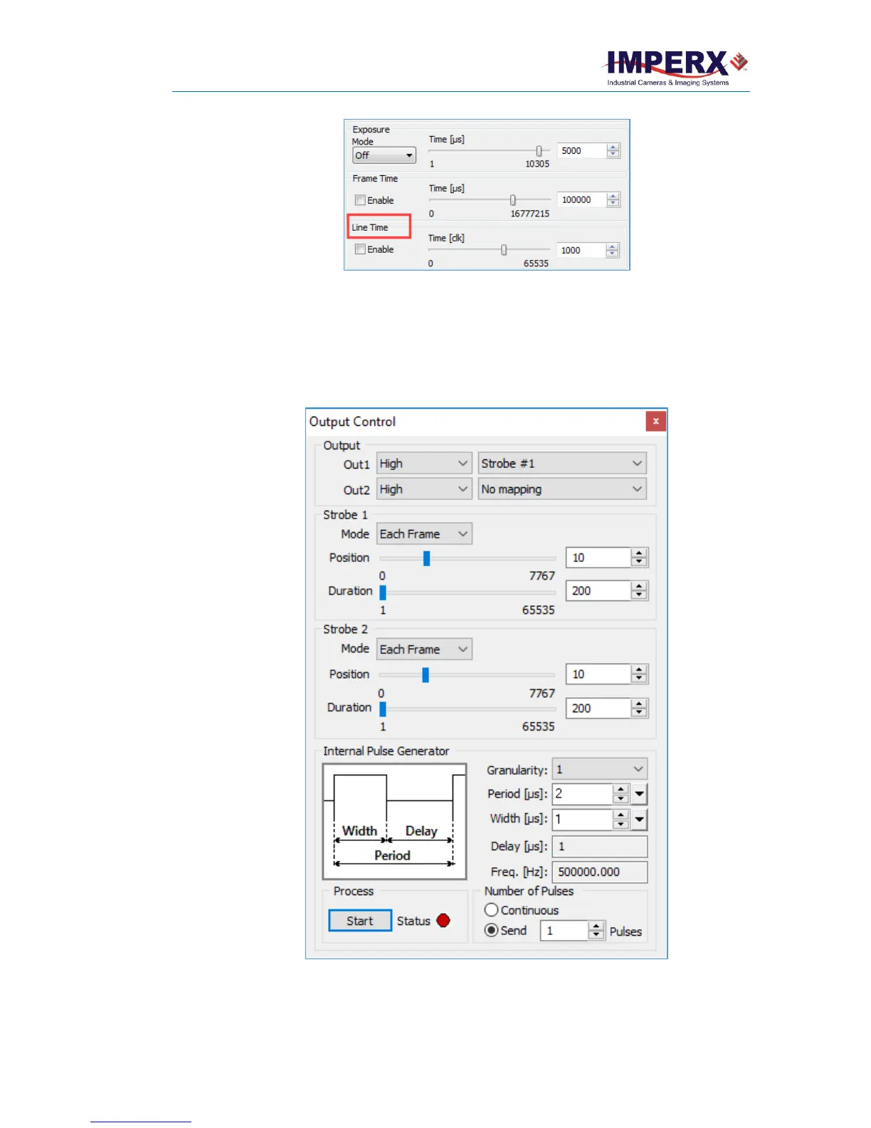 Output Control lets you configure the camera for the two strobe outputs, trigger signal,