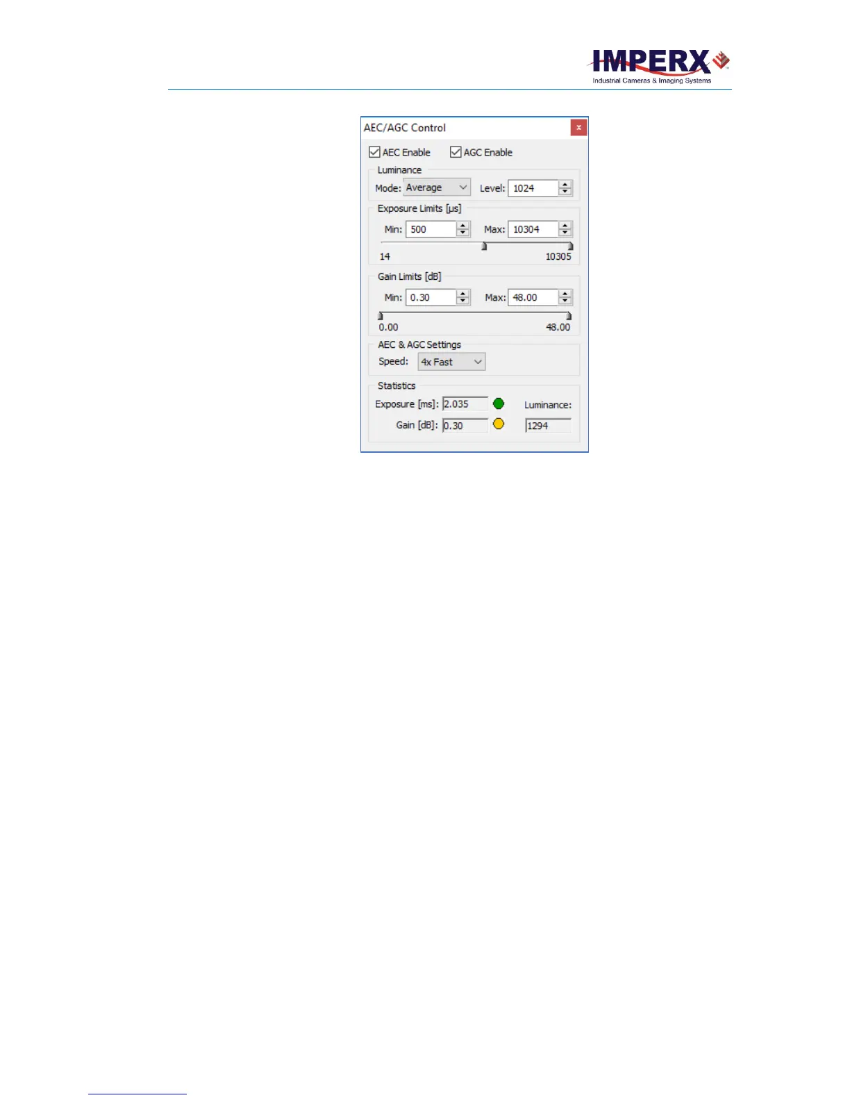 Statistic: Provides live information about the current value of the Exposure time, Gain, and