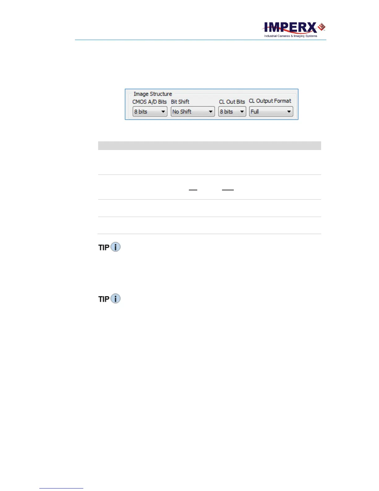 the image sensor. Bit depth options are 8 bits, 10 bits, or 12