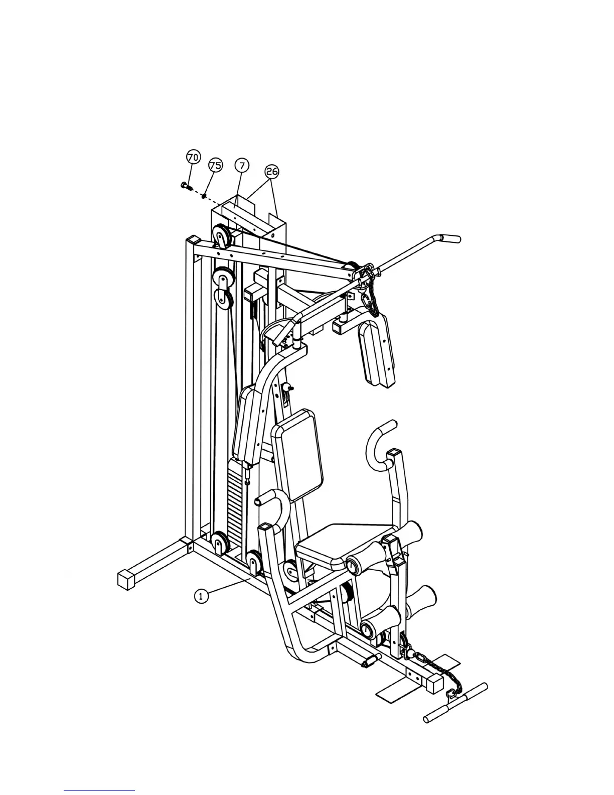 A.) Attach two Weight Plate Covers (#26) to the Weight stack. Secure it with four M10 x 1” Hex