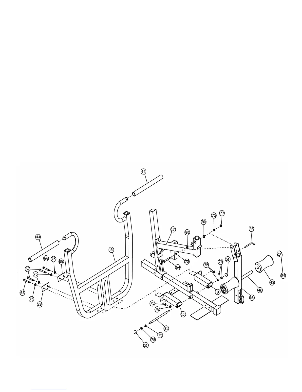 Axle (#31) from both sides. Secure the Axle with two ∅ 13/16” Flat Washers (#75), M10