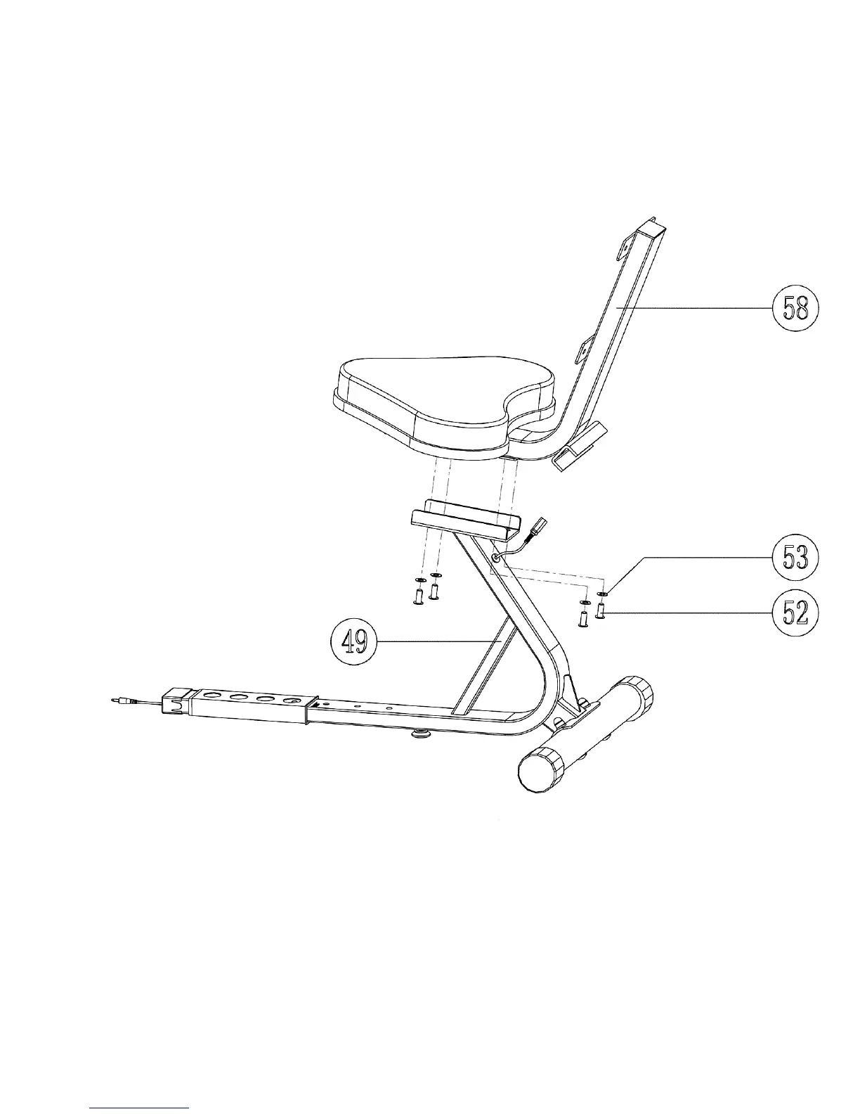 A.) Attach the Seat Support Frame (#58) to the Sliding Seat Support (#49).