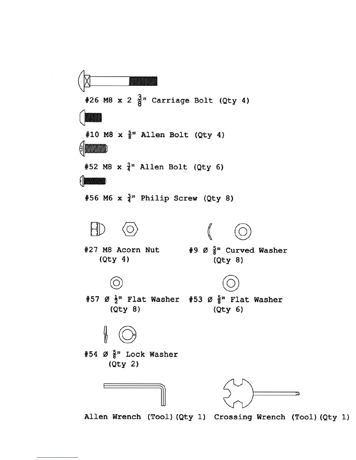 NOTE: The following parts are not drawn to scale. Please use your own ruler to measure the
