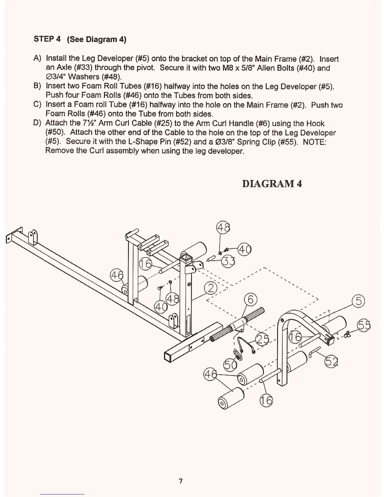 Impex CB 420 - Step 4: Leg Developer and Curl Cable Setup