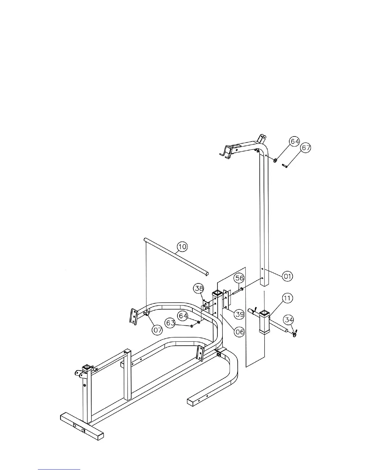 B.) Attach the Cross Brace (#7) to the Lat Bar Base. Align the holes on the Lat Bar Frame,