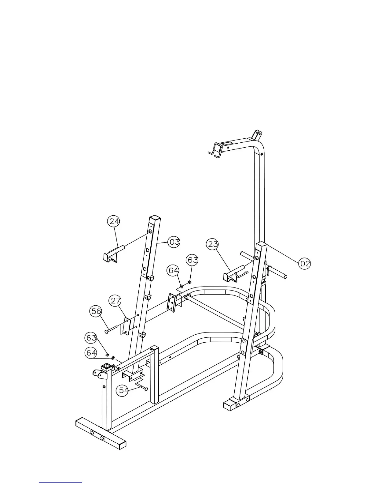 E.) Insert the Left & Right Bar Holders (#23 & 24) into the selected holes on the Upright Beam.
