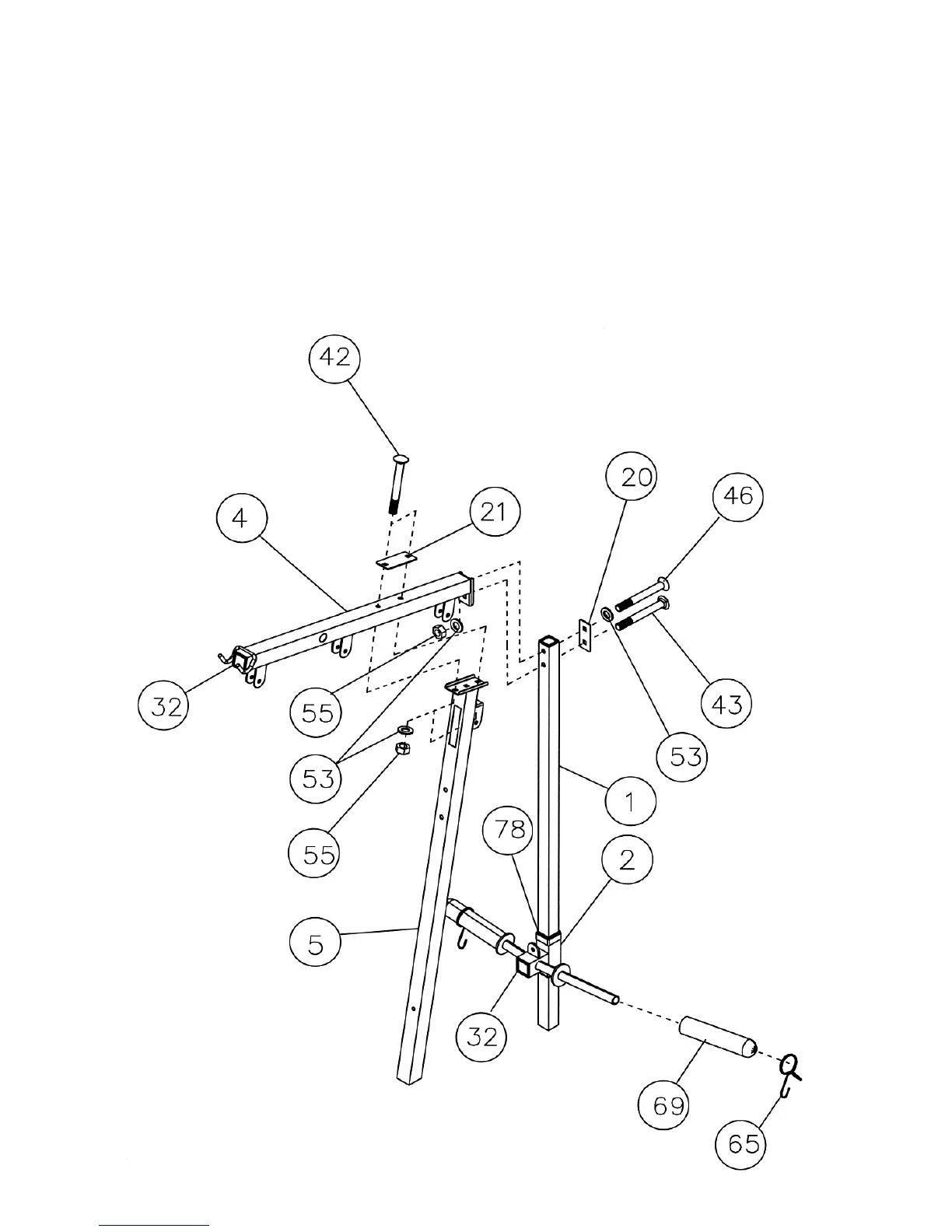(#53). Sure the bottom hole with a M10 x 2 3/8” Carriage Bolt (#43), ∅ ¾” Washer (#53) and