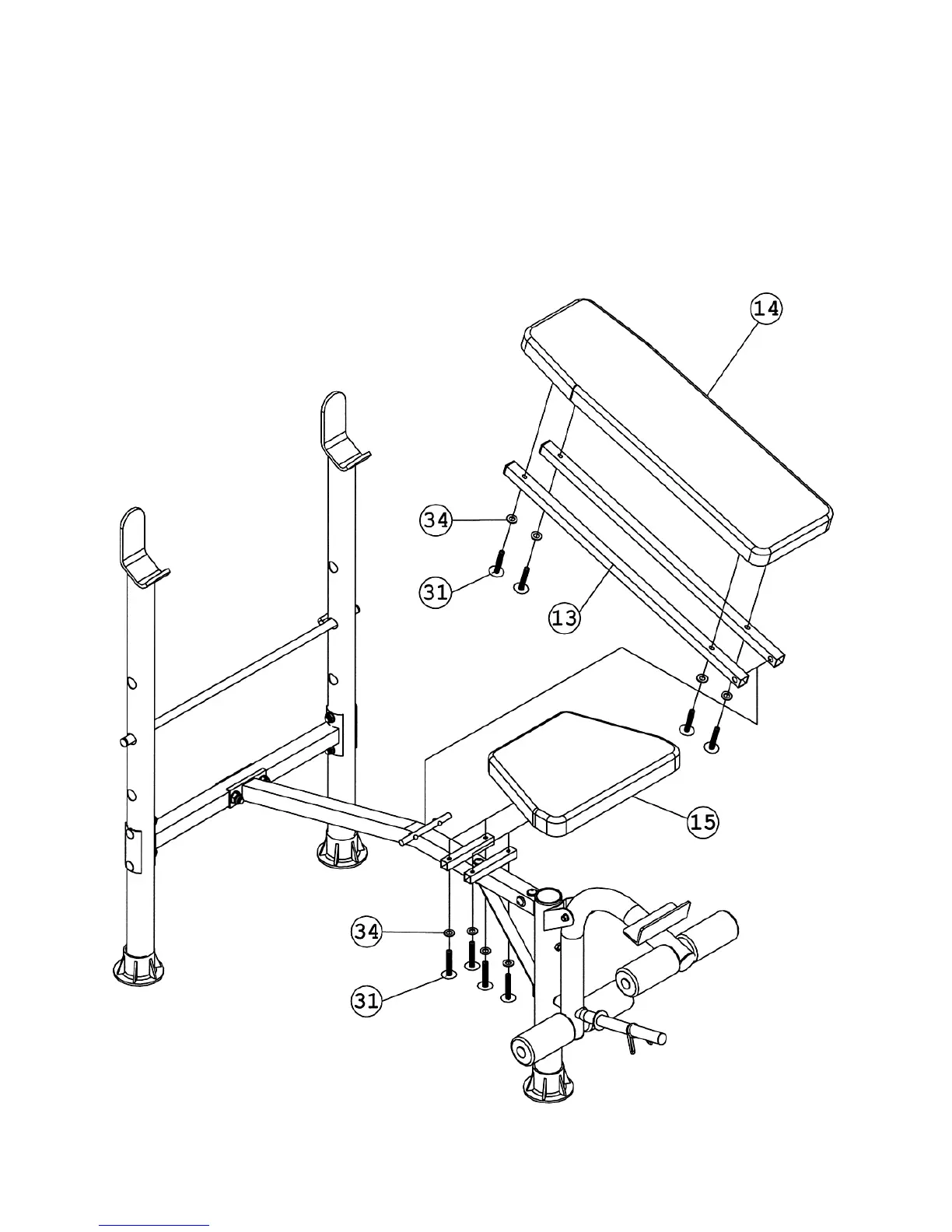 C.) Place the Seat Pad (#15) onto the Main Seat Support. Secure it with four M6 x 1 3/8”