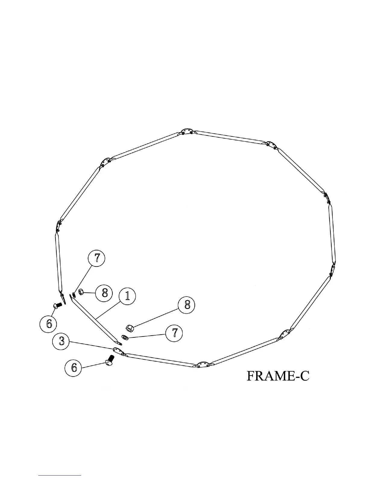 B.) Connect ten Blue Frames (#1) together to form a big circle (Frame C) using ten 4-hole