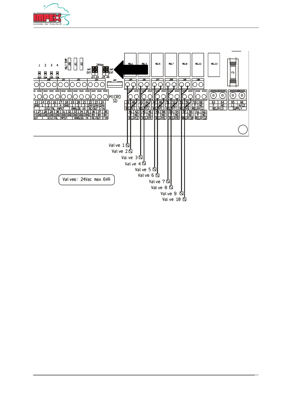 Important: The 4 jumpers with the text '24VAC' must all be in 'INT' position. See diagram.