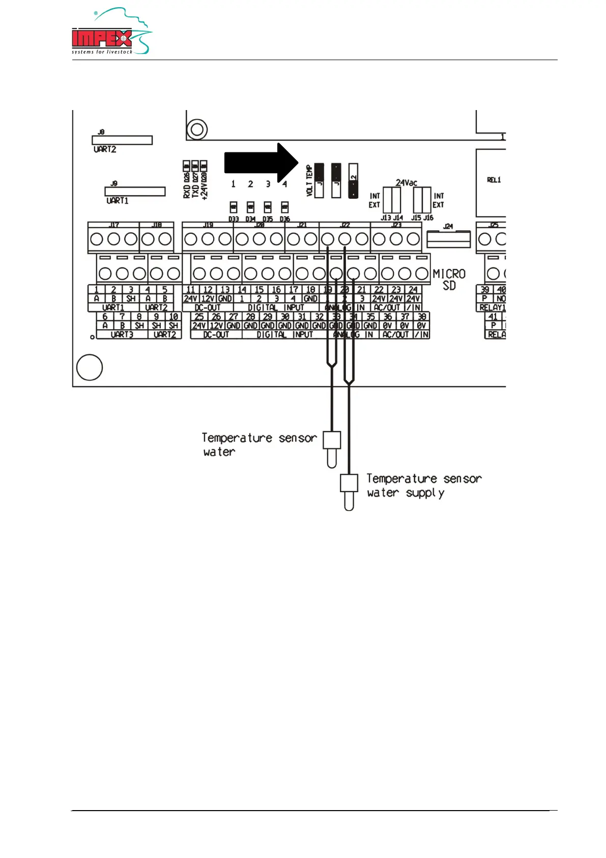 Important: The corresponding jumpers must be in “TEMP” position. See diagram.