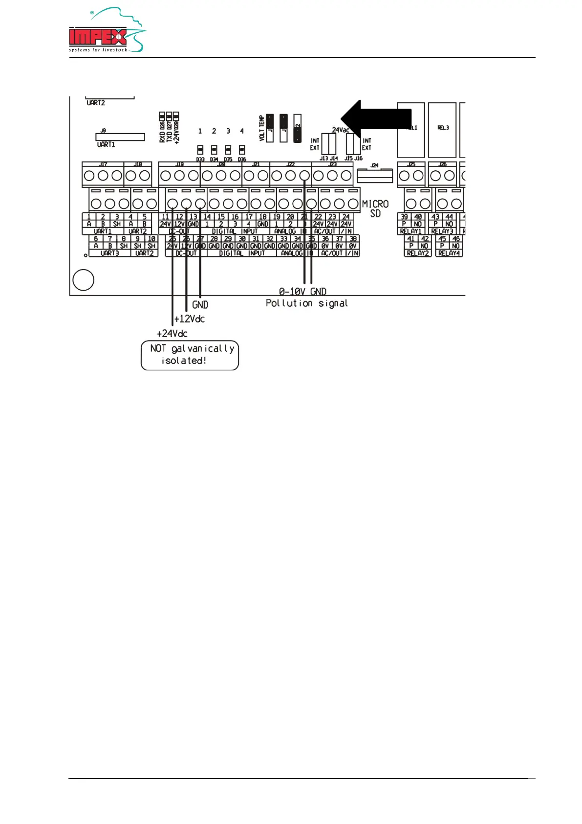 Note: The 12V or 24V power supply with a maximum of 50 mA can also be used to power a pollution sensor.