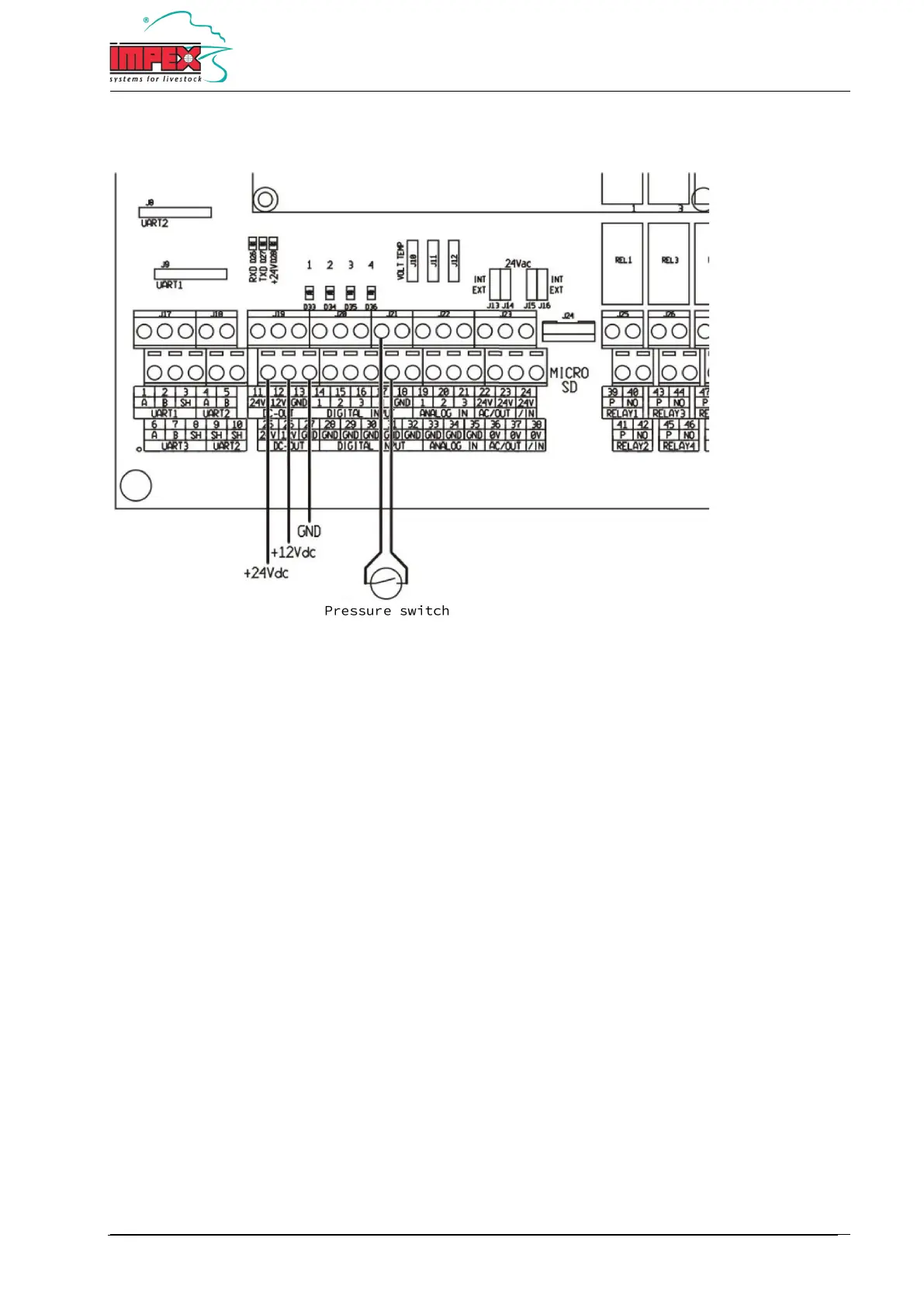 Note: The 12V or 24V power supply with a maximum of 50 mA can also be used to power a pressure switch.
