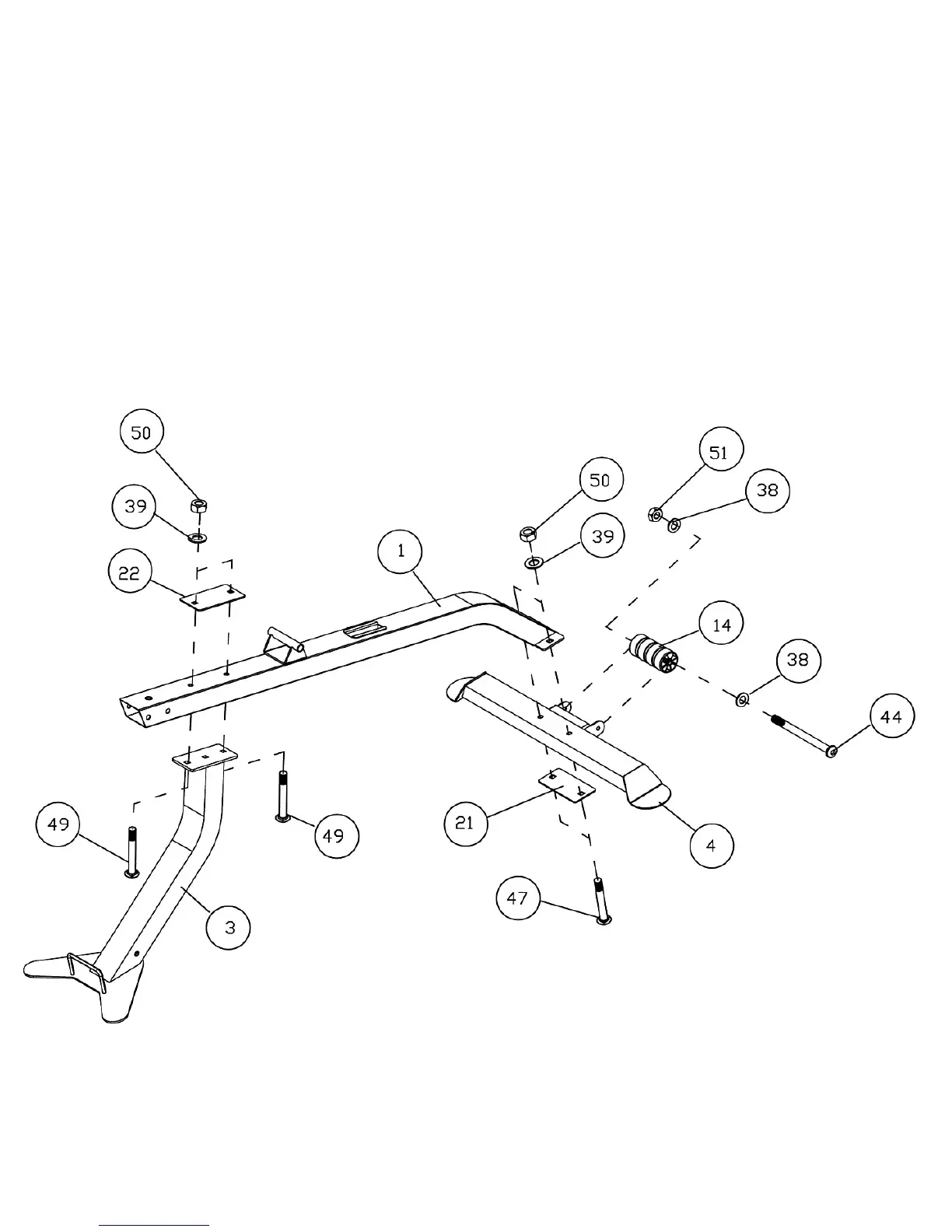 Carriage Bolts (#49), one 5 1/8” x 2 ¾” Bracket (#22), two Ø ¾” Washers (#39), and two