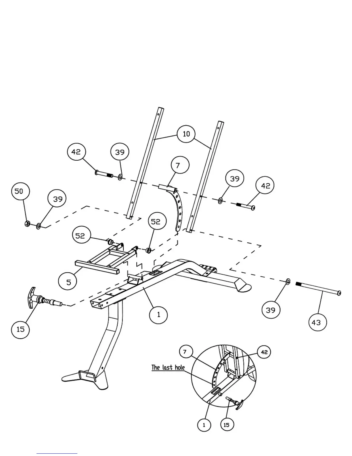 shaped Lock Pin (#15) to secure the Backrest Incline Support at the Last Hole on the end of