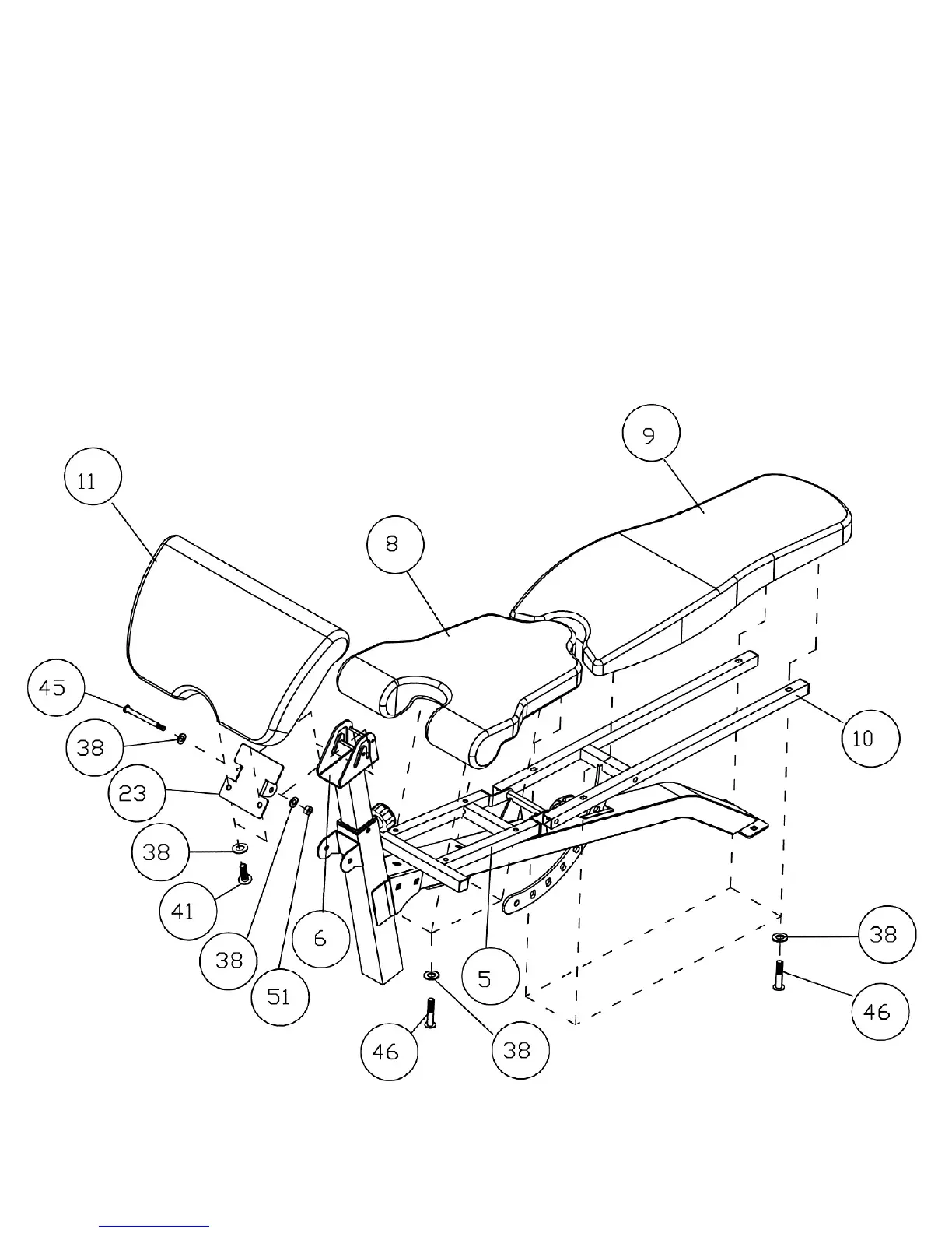 Bolts (#46) and Ø 5/8” Washers (#38).