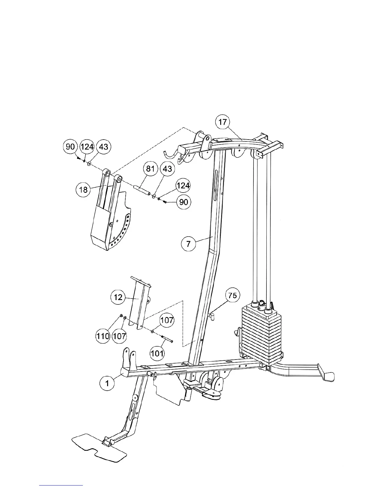 7/8” Front Press Axle (#81) through the holes. Secure the Axle with one M8 x ¾” Allen Bolt
