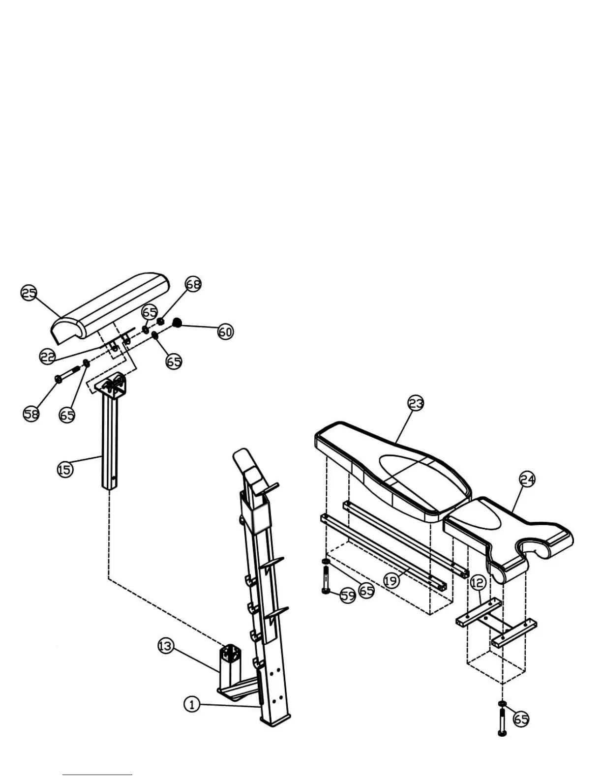 A.) Attach the Backrest Board (#23) to the Backrest Supports (#19). Secure it with four M8 x 1