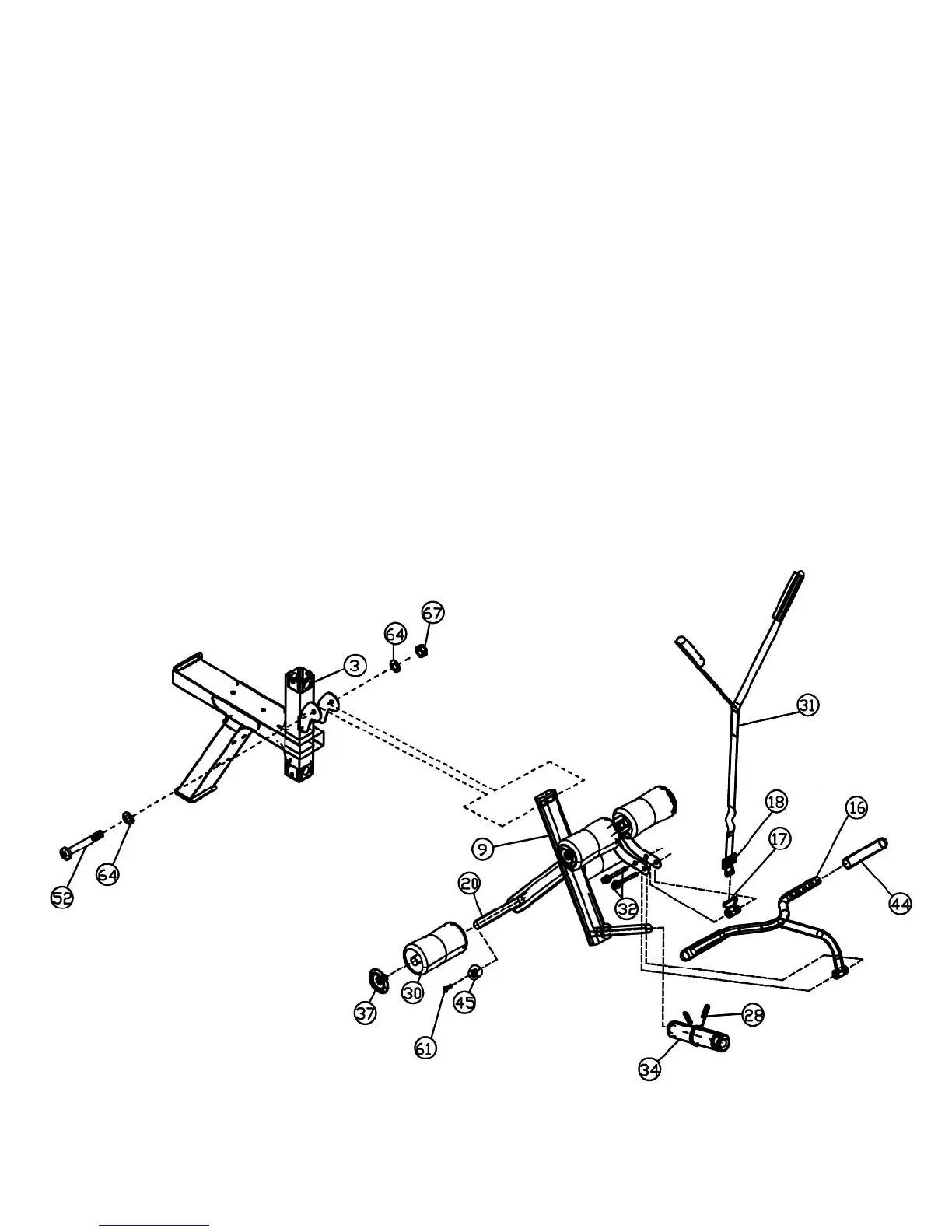 one 3” Lock Pin (#32). Attach the Abdominal Strap (#31) to the front hole on the Leg