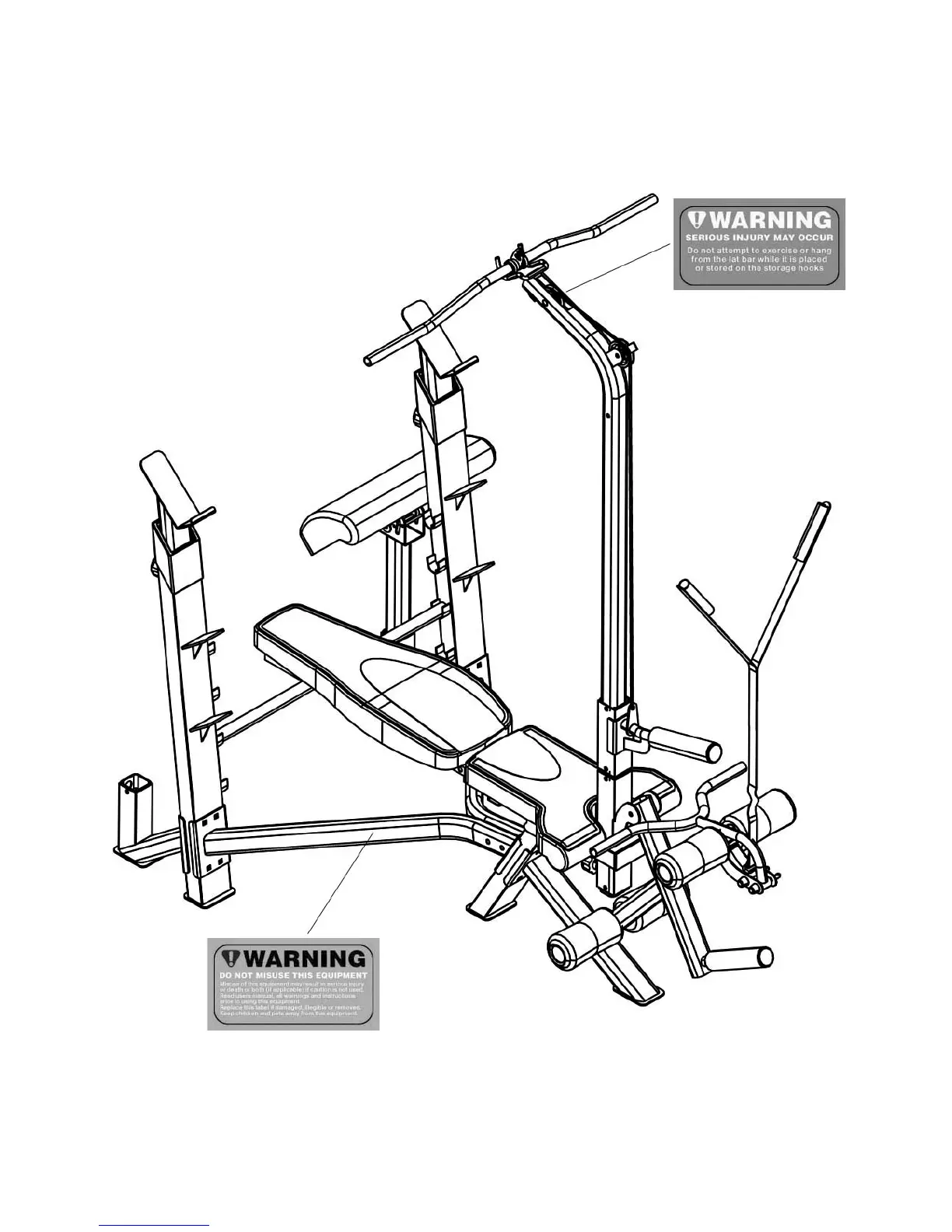 The Warning Labels shown here have been placed on the Support Frame and Lat Bar. If