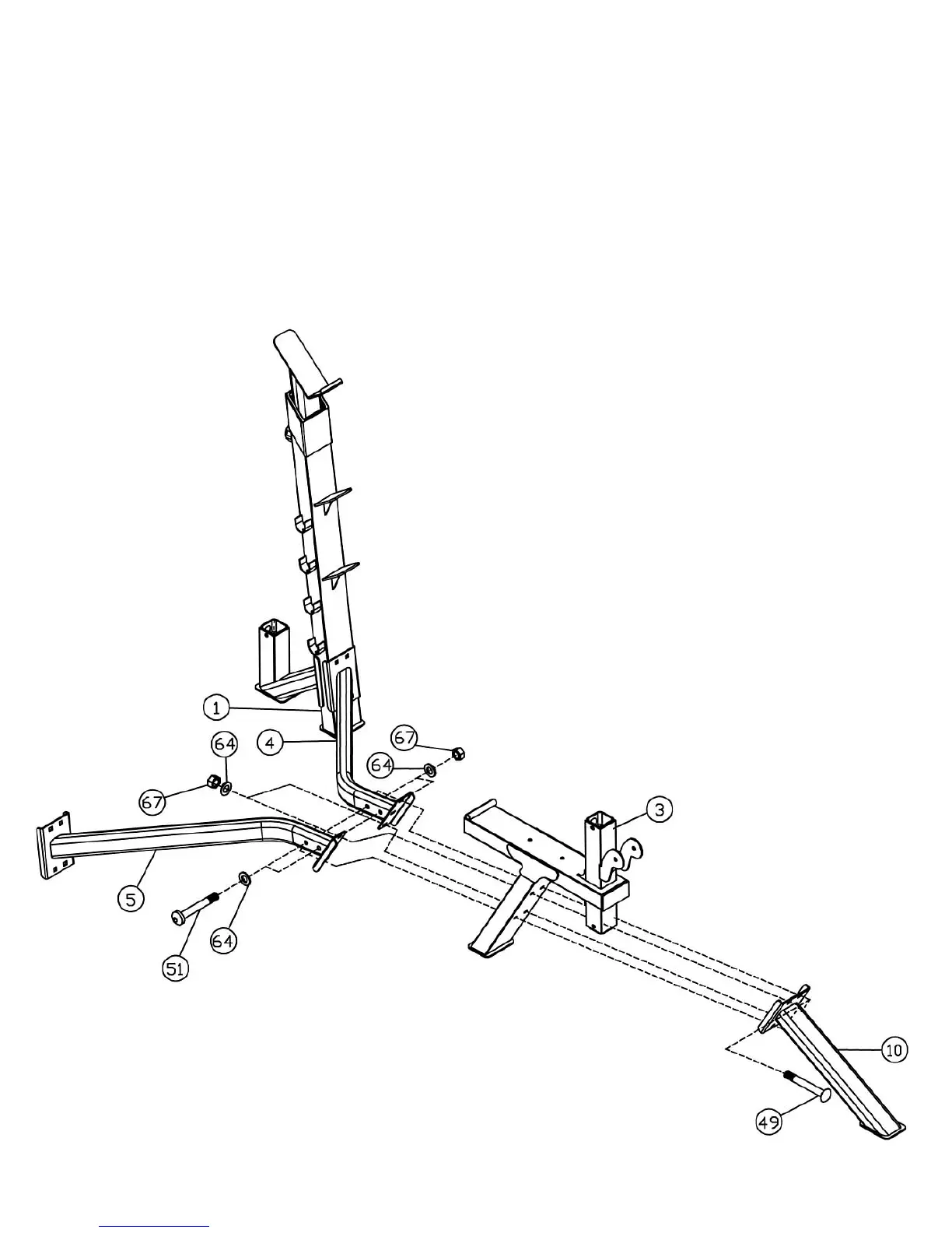 four M10 x 2 ¾” Carriage Bolts (#49), Ø ¾” Washers (#64) and M10 Aircraft Nuts (#67).
