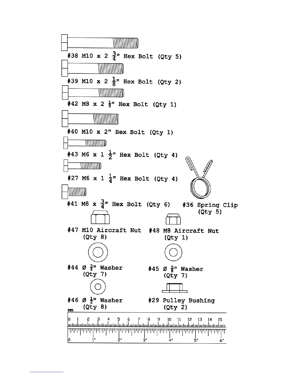 NOTE: The following parts are not drawn to scale. Please use your own ruler or scale to measure the size.