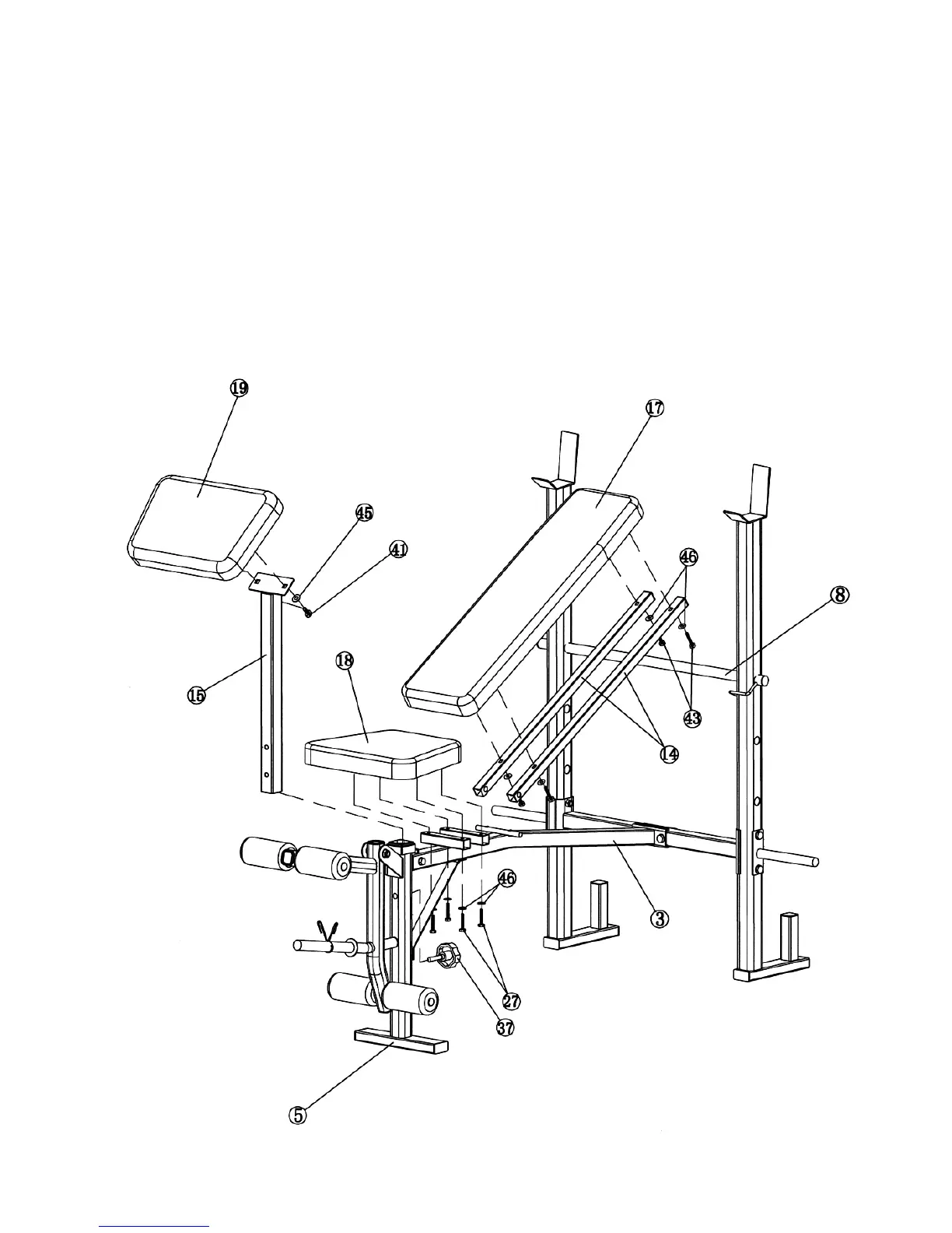 D.) Attach the Arm Curl Pad (#19) to the Arm Curl Stand (#15). Secure it with two M8 x ¾”