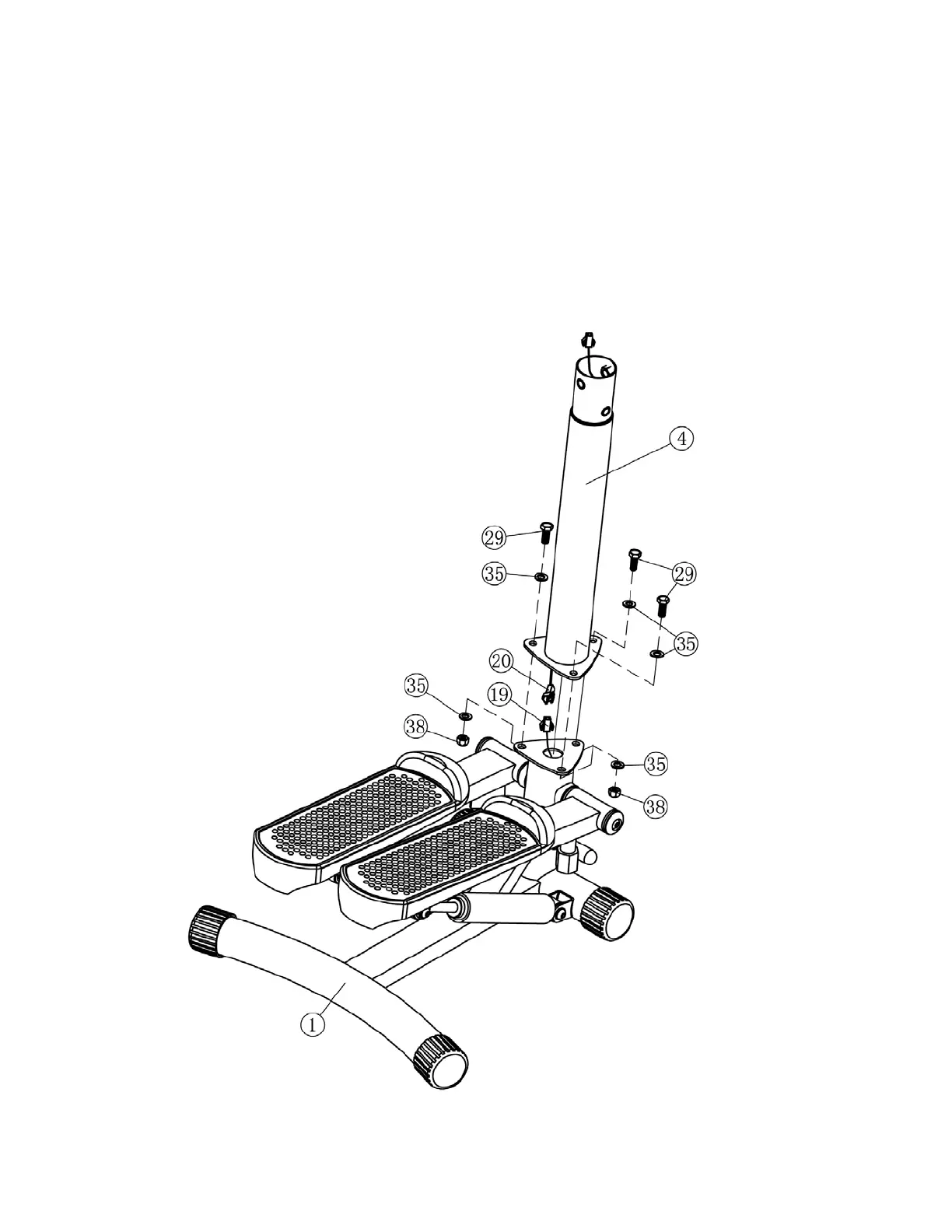 Bolts (#29), six Ø ⅝” Washers (#35), and three M8 Aircraft Nuts (#38).