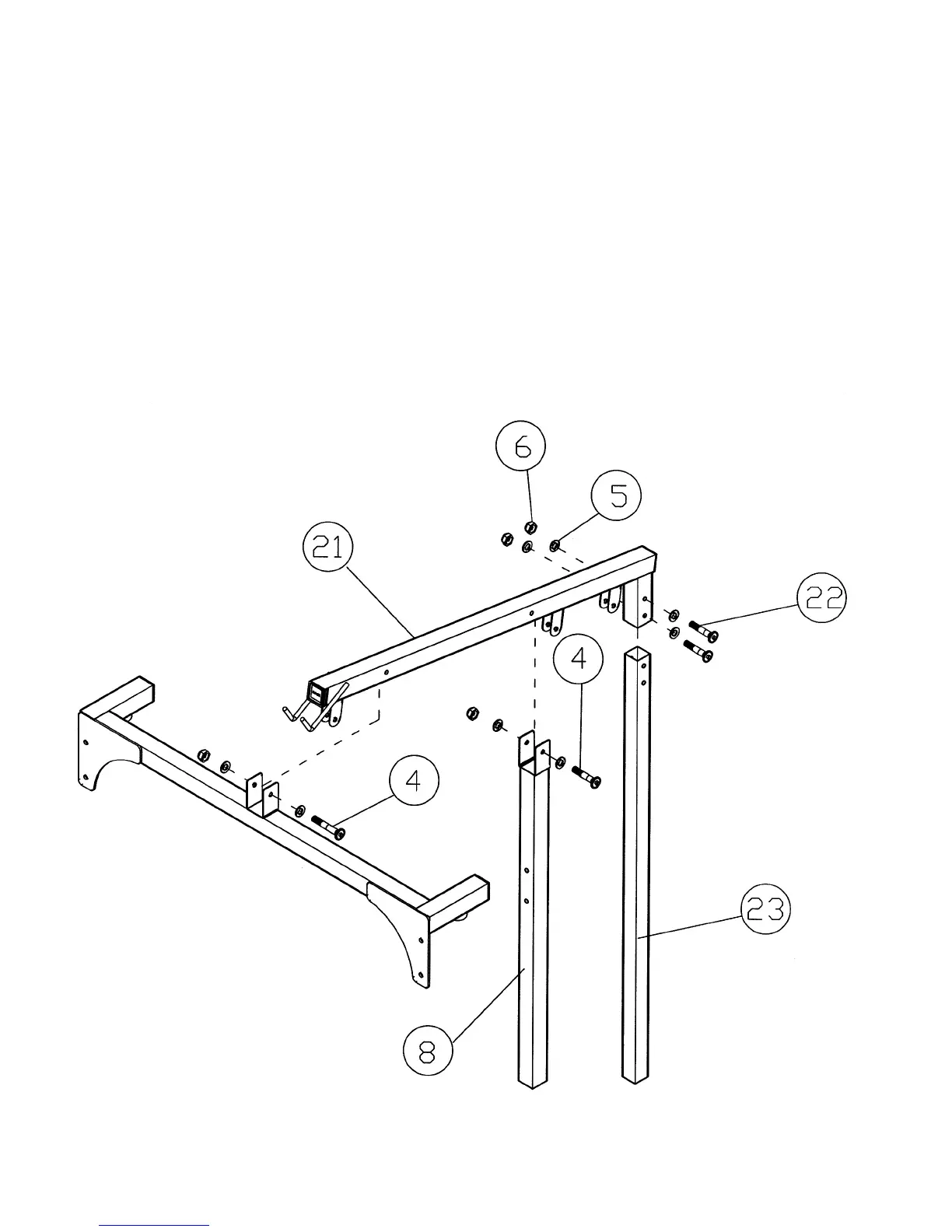 B.) Secure the Upper Frame (#21) to the Rear Vertical Beam (#23) with two M10 x 2 ½”