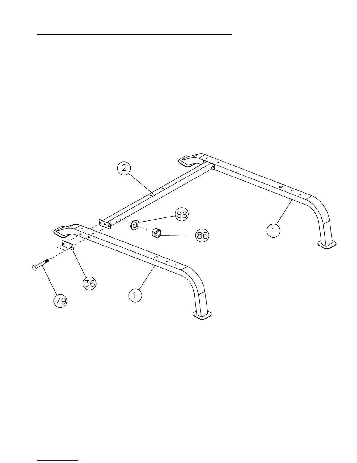each end of The Cross Brace with two M10 x 3 ½” Carriage Bolts (#79), one 4 ¾” x