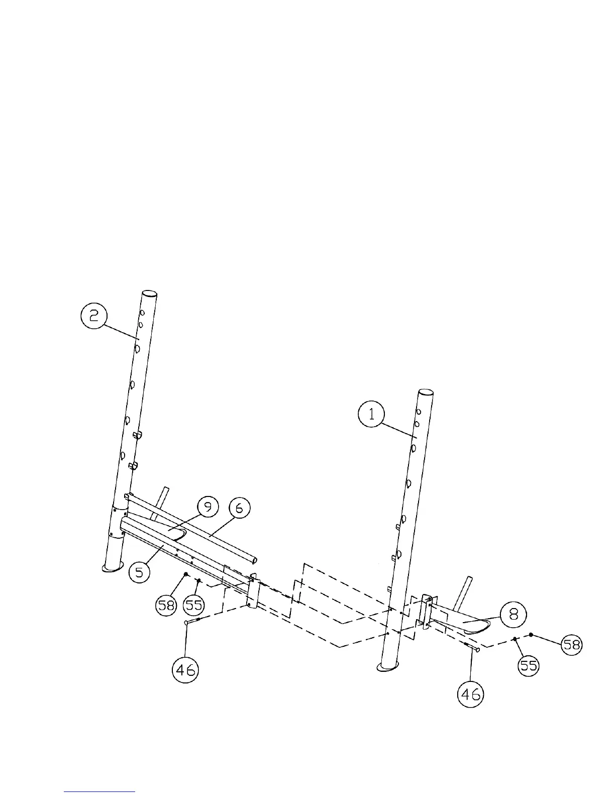 C.) Place the Backrest Adjustment Bar (#6) onto the selected slot on the Upright Beams to obtain