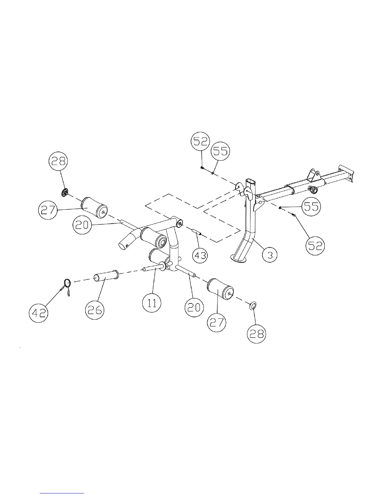 A.) Attach the Leg Developer (#11) to the Front Post (#3). Secure it with an Axle (#43), two