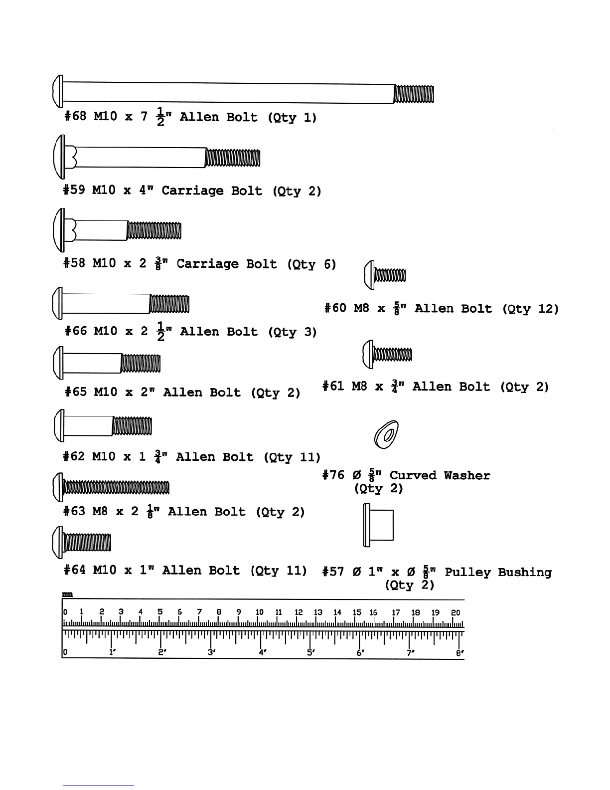 NOTE: The following parts are not drawn to scale. Please use your own ruler to measure the size.