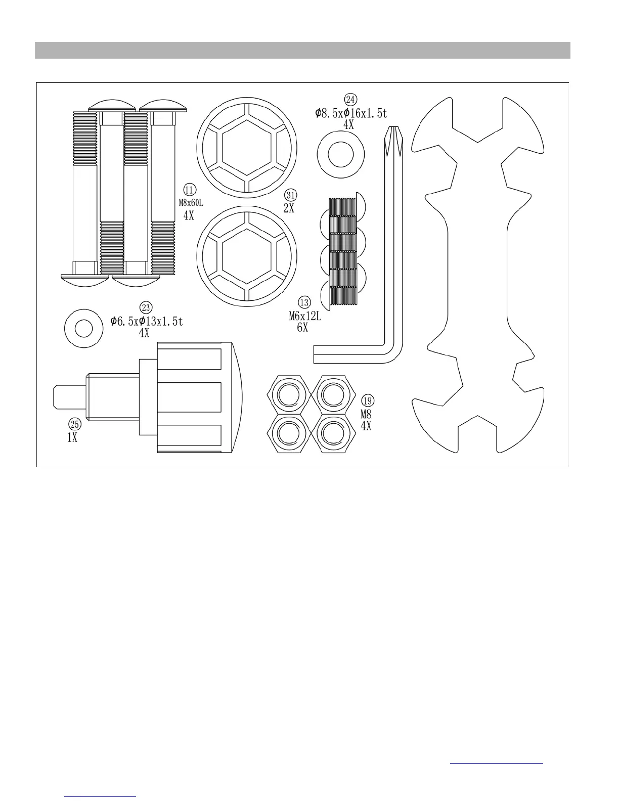 NOTE: The following parts are not drawn to scale. Please use your own ruler to measure the size.