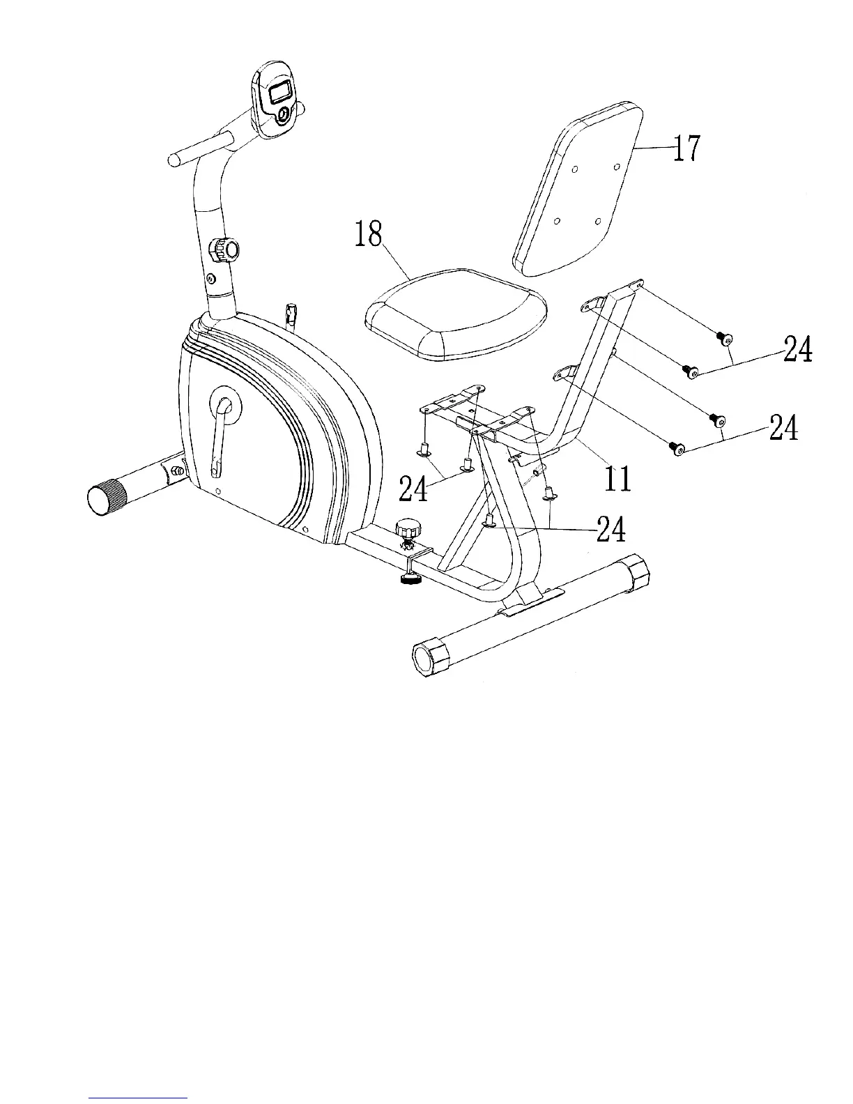 A.) Attach the Handle (#12) to Seat Support (#11). Secure it with two M8 x 1 5/8” Carriage Bolts