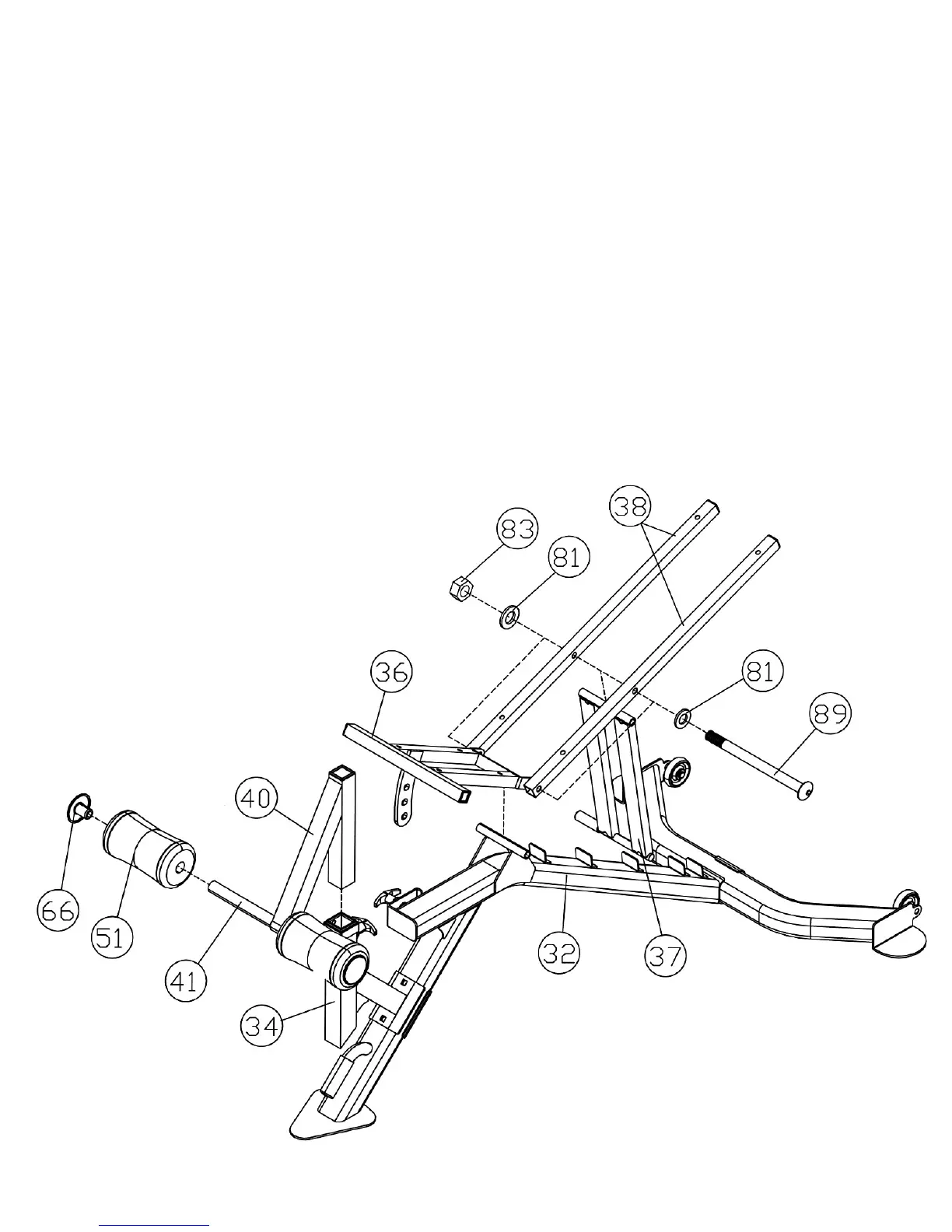 B.) Attach the Incline Support (#37) to the middle side-holes on the Backrest Supports (#38).