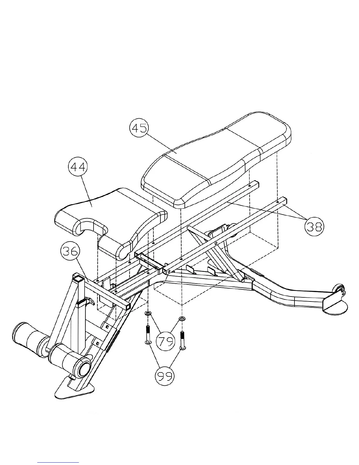 B.) Place the Seat (#44) onto the Seat Bracket (#36). Secure it with four M8 x 1 5/8” Allen