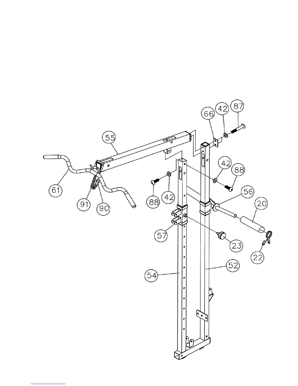 A.) Slide the Sliding Weight Post (#56) onto the Rear Vertical Frame (#52). Slide the Sliding
