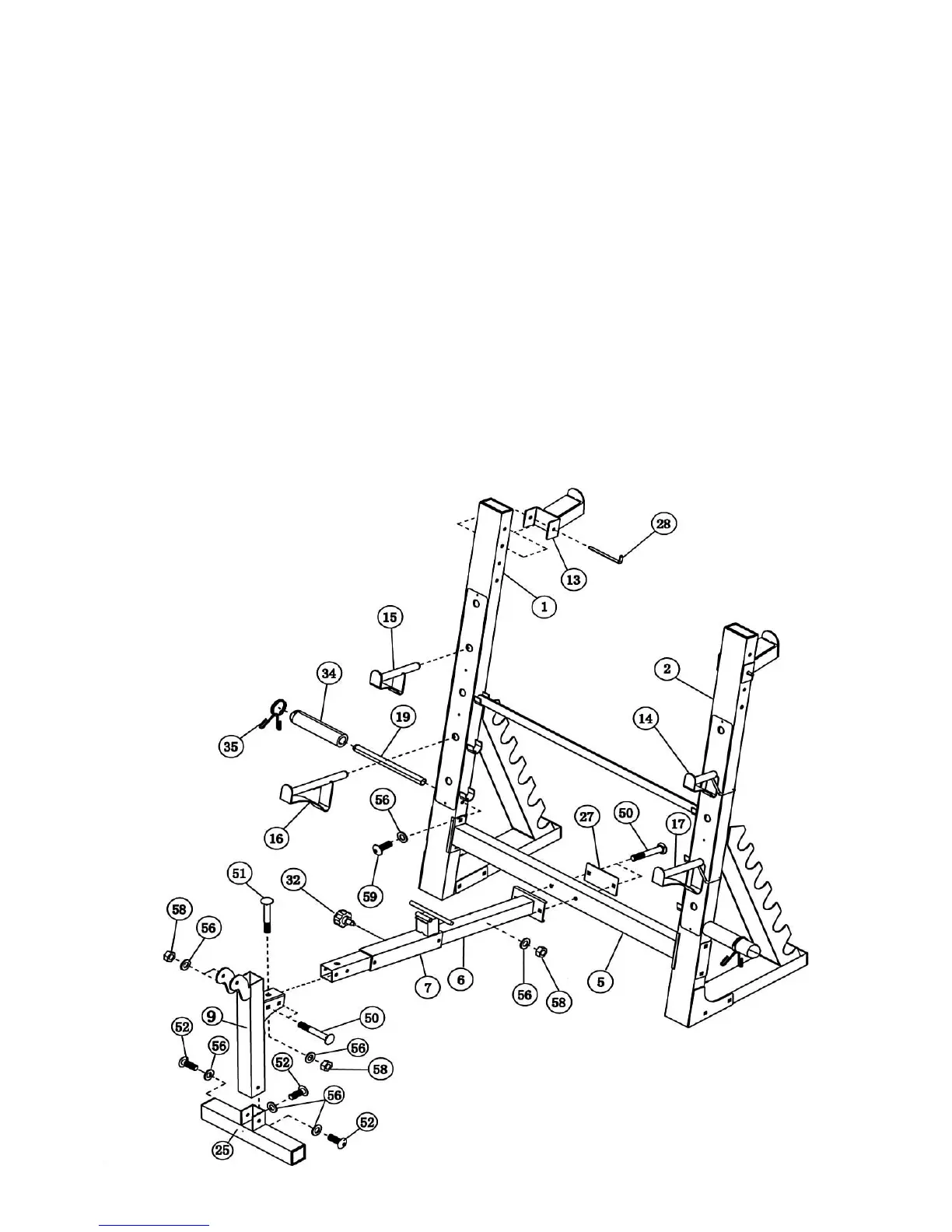 E.) Attach the two Squat Bar Catches (#13) to the back of the two Upright Beams. Secure