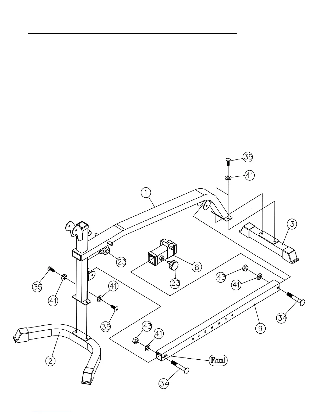 A.) Attach the Main Frame (#1) to the Front & Rear Stabilizers (#2 & 3). Secure each end with